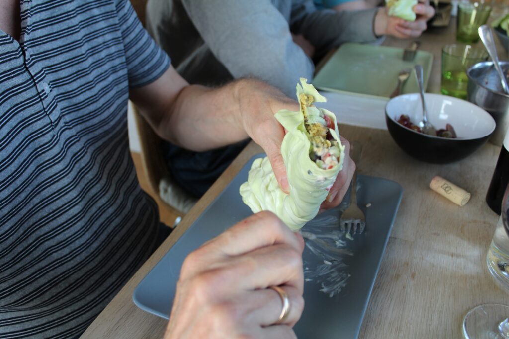 - Samling og servering: Server falafler og kålblade sammen med resten af tilbehøret i små skåle, så alle ved bordet kan samle deres egne "wraps" eller "kålbåde"