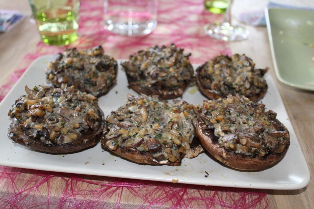 En dejlig inspirerende E-bog, som han havde besluttet at prøve nogle grillerier fra. Samtidig ville han gerne grille nogle af vores favoritter, bl.a. fyldte portobellosvampe, i en vegansk udgave.
