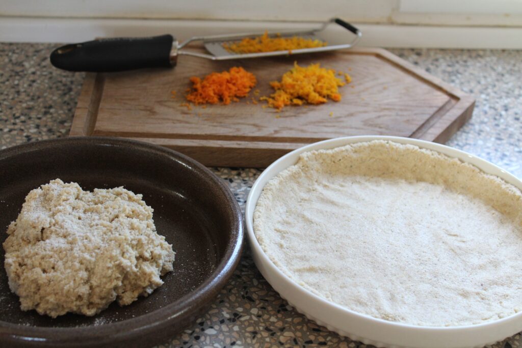 Vi har besluttet, at vi vil investere i en god foodprocessor – som vil gøre det så meget nemmere at lave meget af det mad, vi laver. Men vi har ikke fået købt den endnu. Jeg valgte i stedet at forsøge med en mandel-appelsintærte, som jeg lavede i “gamle dage”, og som jeg længe har haft lyst til at prøve af i en vegansk udgave?