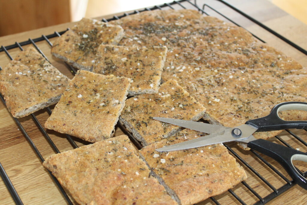 - Kom brødene på bageplader med bagepapir med en ske dyppet i vand. Tryk dem ca. 1cm flade og form dem med skeen. Jeg plejer at lave 18stk, men til tapas eller vegansk ostebord laver jeg dem mindre og laver f.eks 24stk.