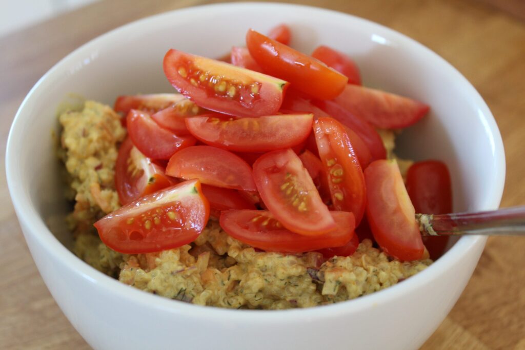 Vegansk æggesalat er en af Månebarnets opskrifter. Luna Månebarn kalder salaten for Vegansk Quinoa-salat, hvilket det nemlig er. Den minder i udseende utrolig meget om æggesalat.